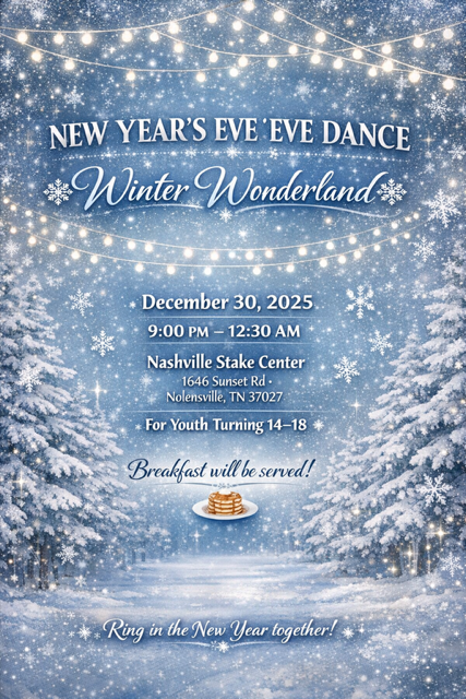 Join with youth from throughout the region for a multistake Christmas Eve Eve youth dance hosted by the Nashville Stake! Location: Nashville Stake Center.